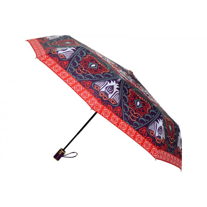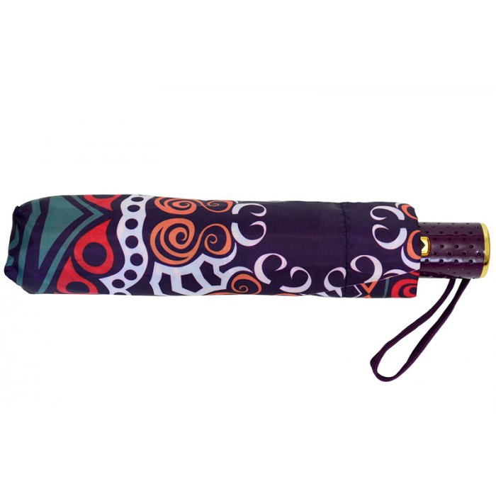 Компактный зонт с полным автоматическим механизмом удобно разместится в сумочке или багажнике машины. Компактность обеспечивает сложение в три раза, что происходит легко и просто.