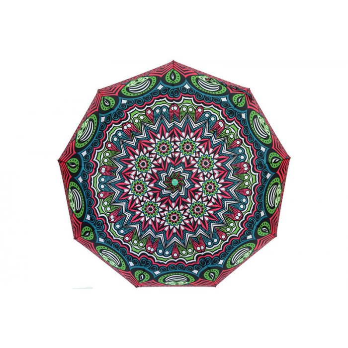 Компактный зонт с полным автоматическим механизмом удобно разместится в сумочке или багажнике машины. Компактность обеспечивает сложение в три раза, что происходит легко и просто.