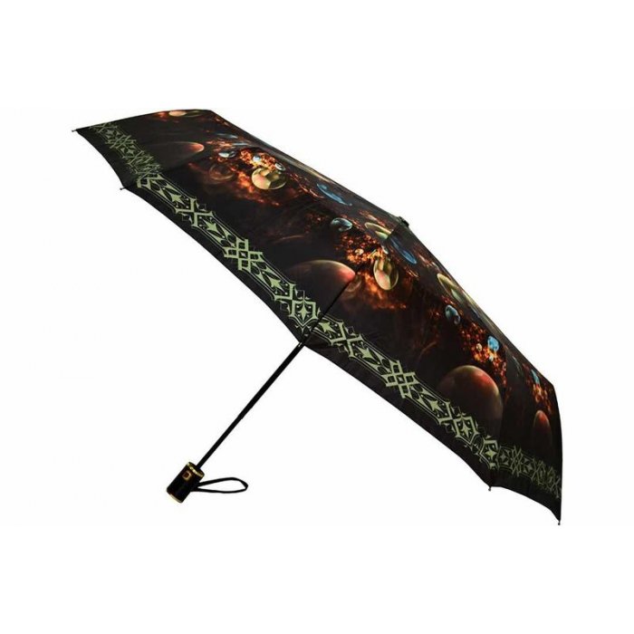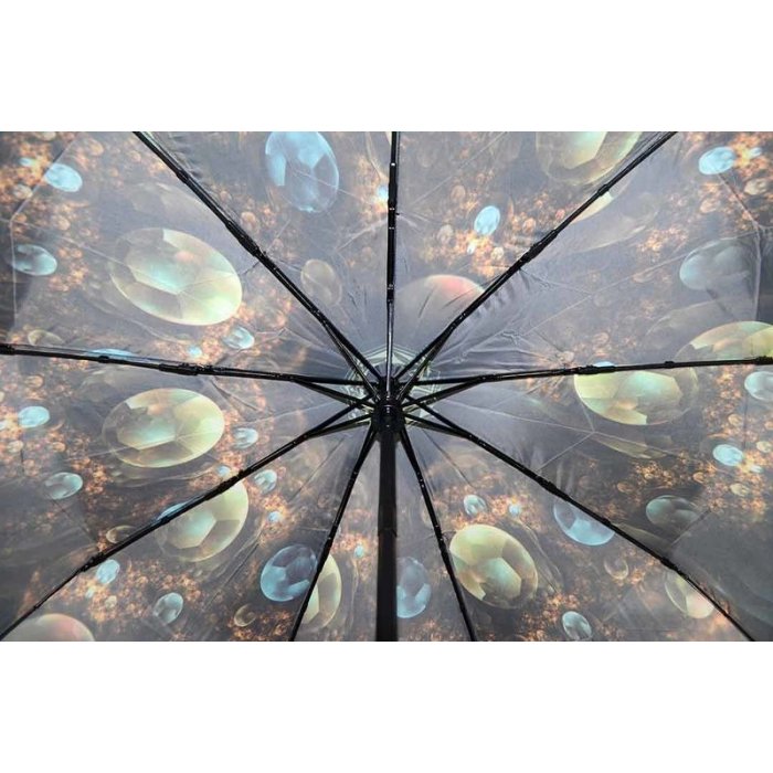 Компактный зонт с полным автоматическим механизмом удобно разместится в сумочке или багажнике машины. Компактность обеспечивает сложение в три раза, что происходит легко и просто.