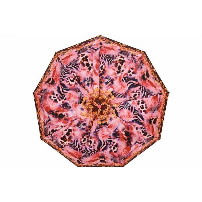 Чтобы выглядеть привлекательно в любую погоду, нужно купить зонт женский «Lantana» розово-коричневого цвета с чёрно-белым абстрактным рисунком. Этот стильный аксессуар от легендарного производителя выполняет сразу две функции: