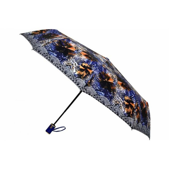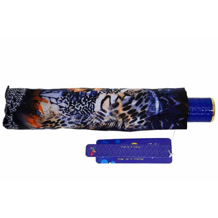 Чтобы выглядеть привлекательно в любую погоду, нужно купить зонт женский «Lantana» сине-коричневого цвета с чёрно-белым абстрактным рисунком. Этот стильный аксессуар от легендарного производителя выполняет сразу две функции: