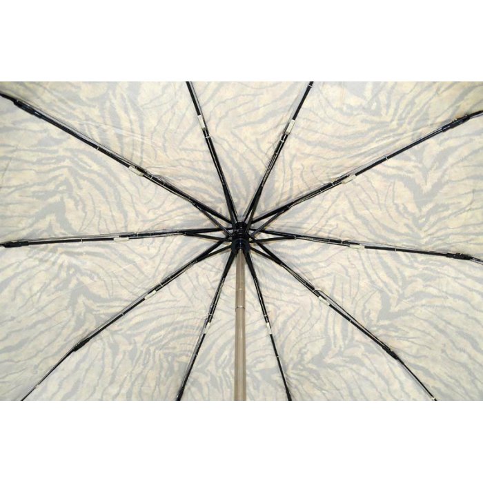 Компактный зонт с полным автоматическим механизмом удобно разместится в сумочке или багажнике машины. Компактность обеспечивает сложение в три раза, что происходит легко и просто.